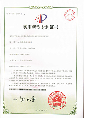 实用新型专利证书--多级反渗透系统前后级间的流量控制装置
