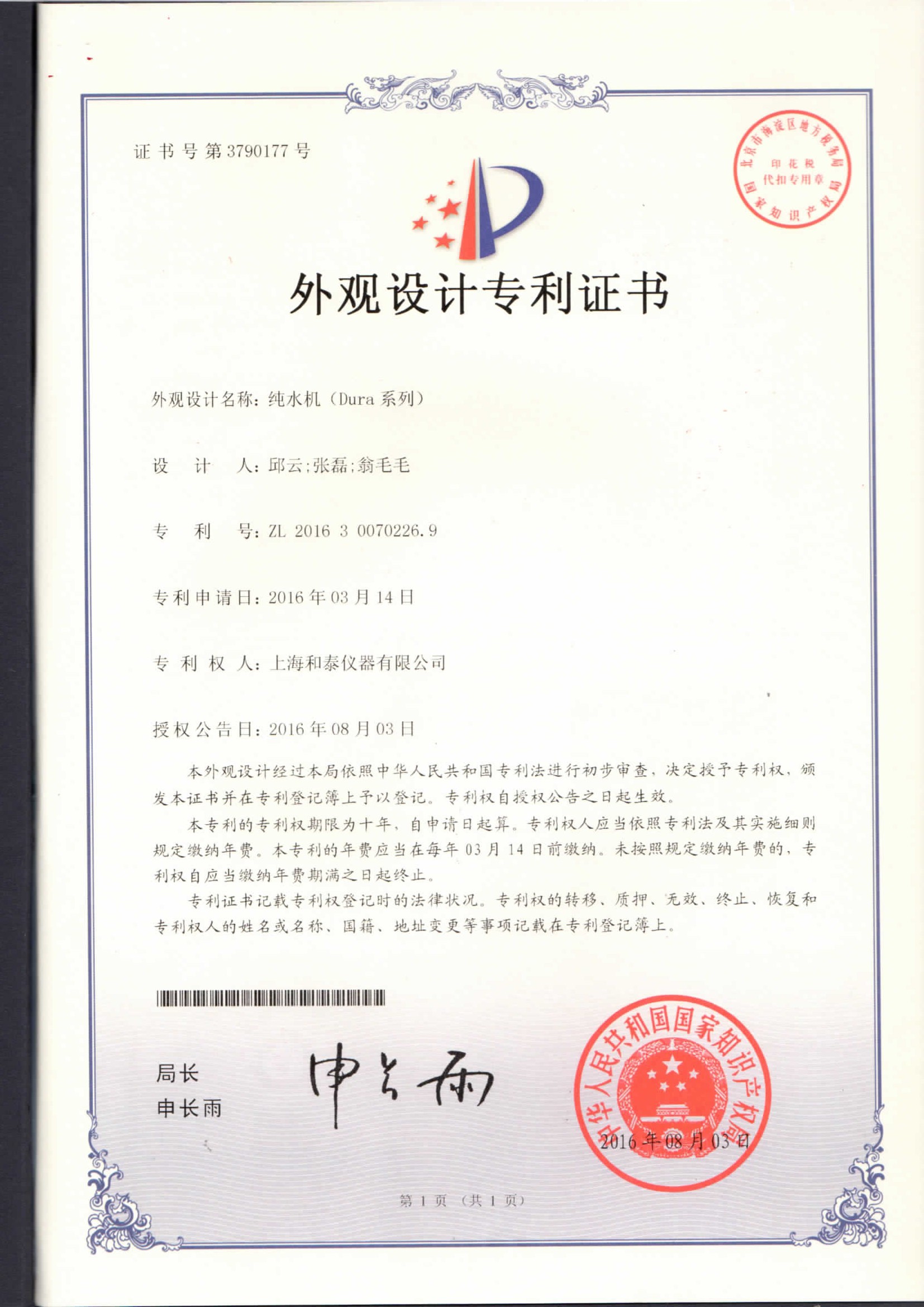 实用新型专利证书--新型双级反渗透台上式超纯水机